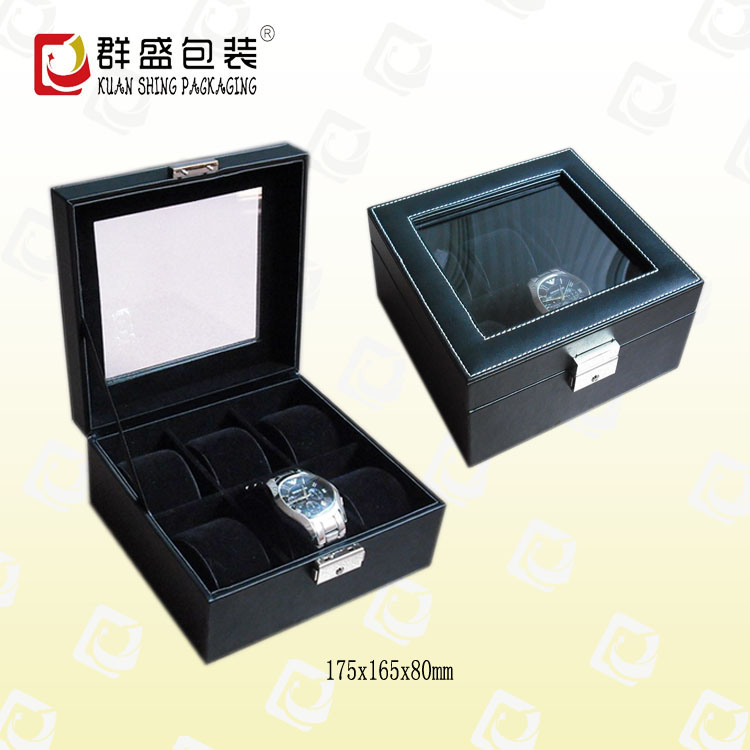黑色pu皮開窗手表盒