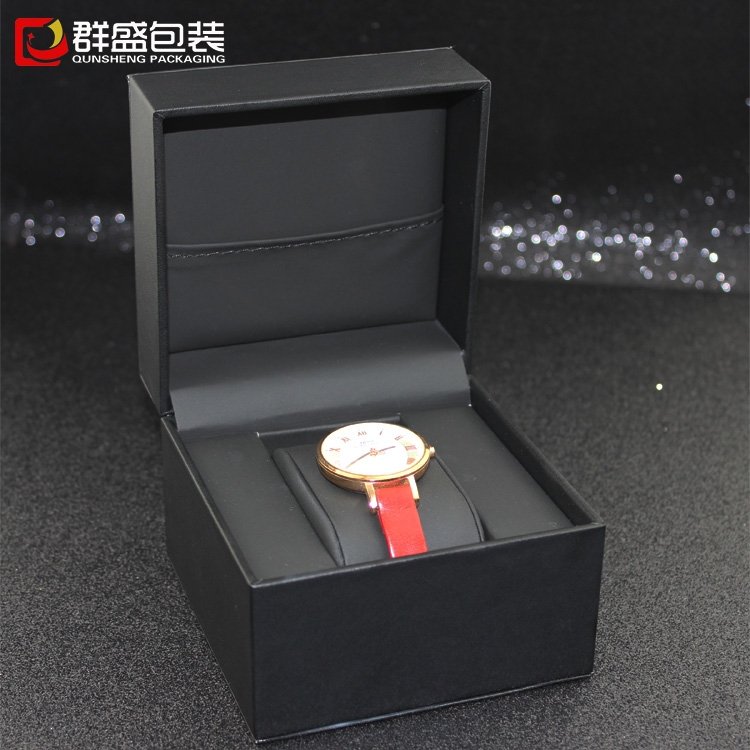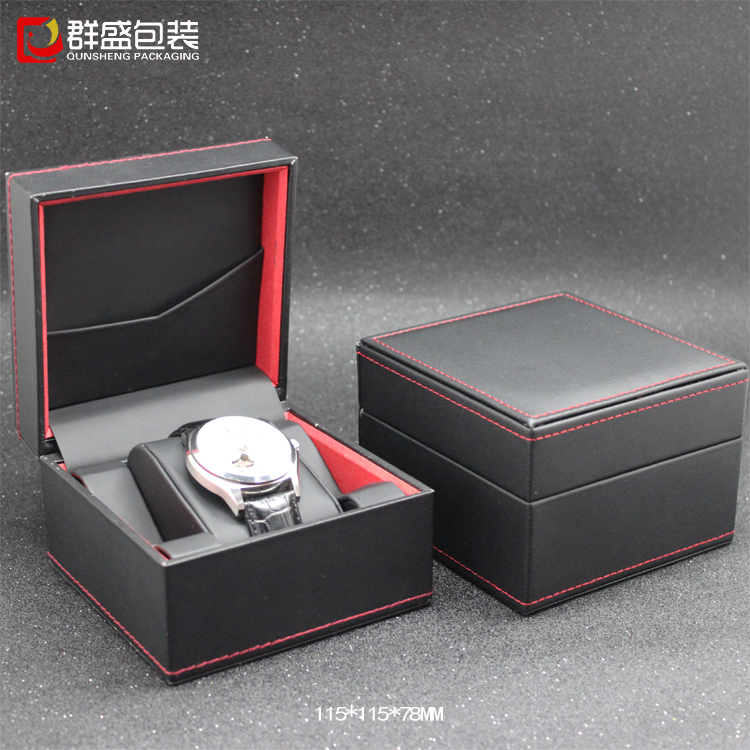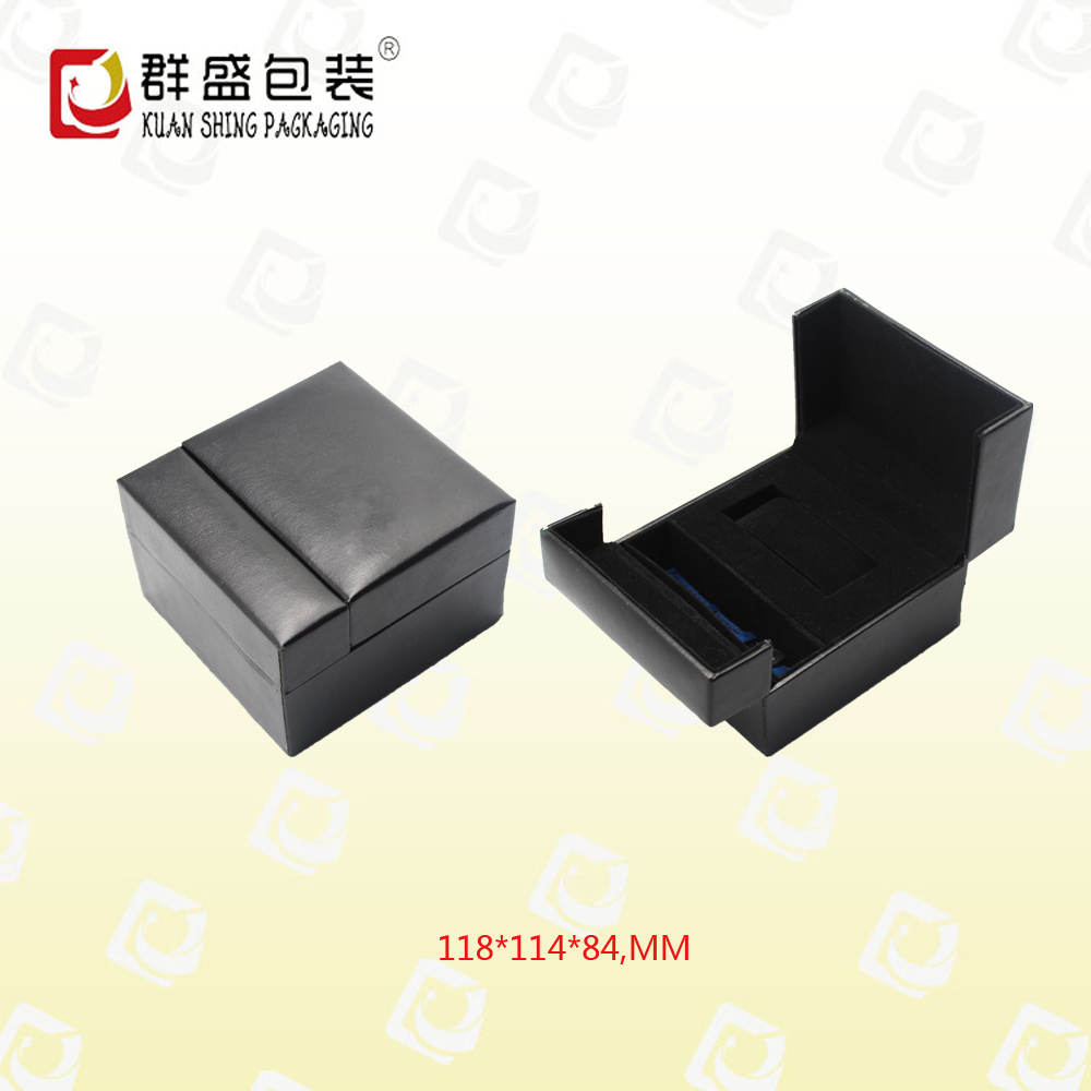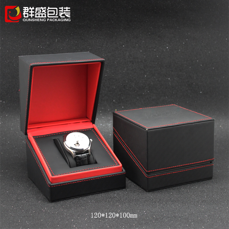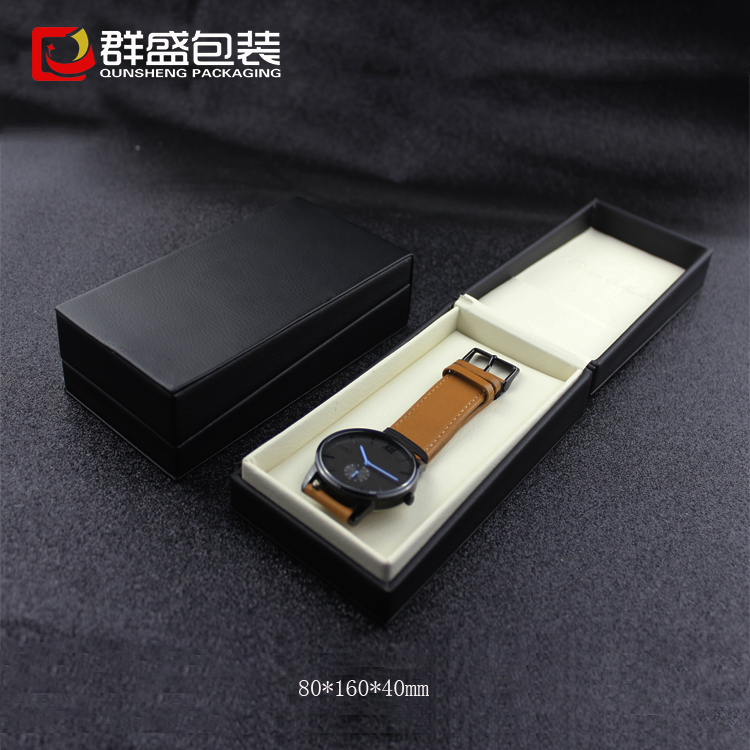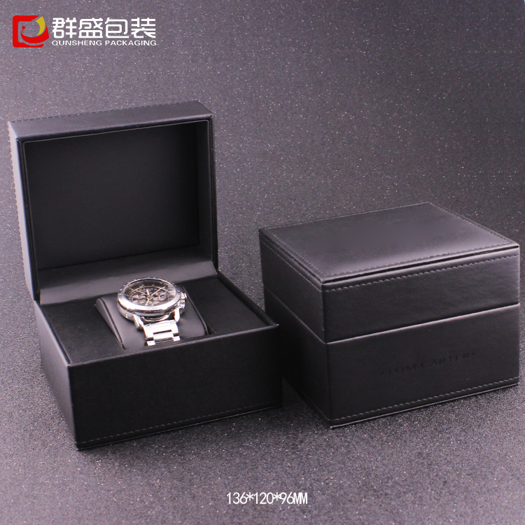 手表包裝盒生產(chǎn)廠家定做黑色皮革小手表盒