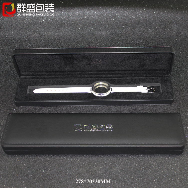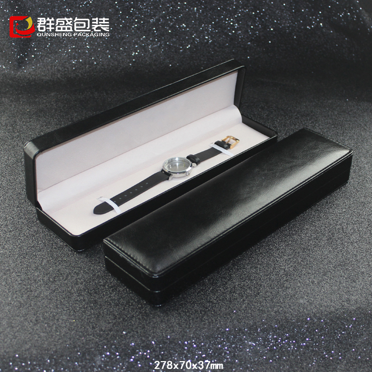 深圳手表盒廠家訂制高檔長手表盒黑色皮革手表盒膠胚盒