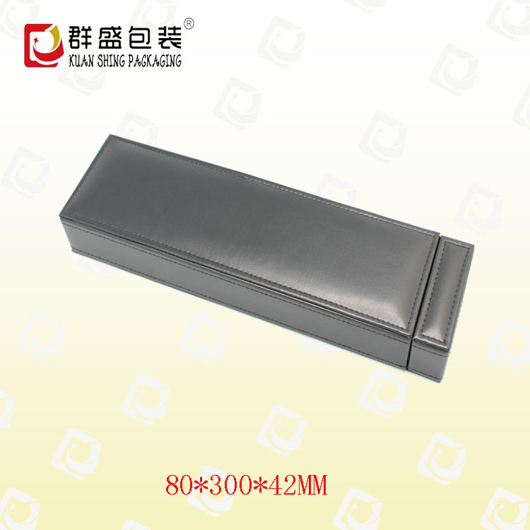 編號(hào):QS-JS030Z 規(guī)格:80*300*42MM 起訂量:1000PCS LOGO:盒面無LOGO 顏色:黑色 樣期:七天 貨期:確認(rèn)大貨樣20個(gè)工作日 描述:PU皮包膠胚,內(nèi)飾為絨布,配EVA