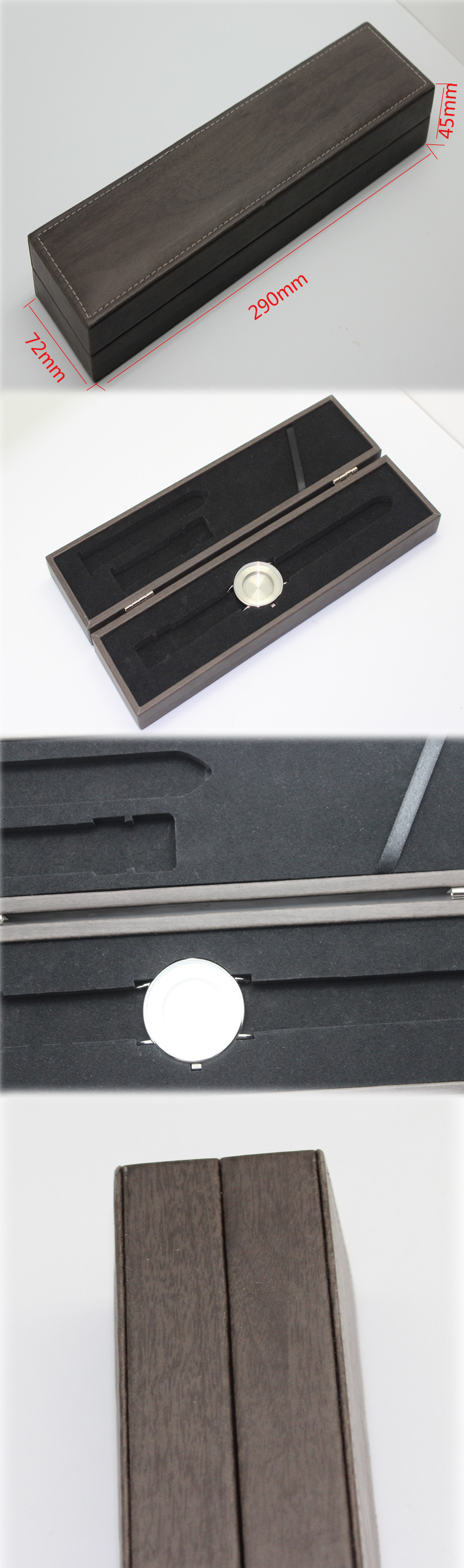 編號:QS-JM023Z 規(guī)格:290*72*45MM 起訂量:1000PCS LOGO:盒面無LOGO 顏色:棕色 樣期:七天 貨期:確認(rèn)大貨樣20個工作日 描述:PU皮包木胚,內(nèi)飾為EVA