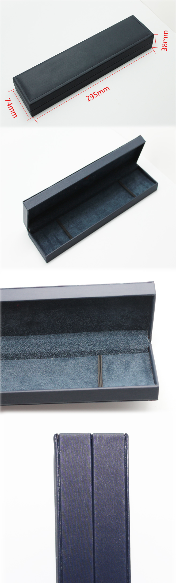 編號(hào):QS-JS090Z 規(guī)格:295*74*38MM 起訂量:1000PCS LOGO:盒面無LOGO 顏色:藍(lán)色 樣期:七天 貨期:確認(rèn)大貨樣20個(gè)工作日 描述:PU皮包膠胚,內(nèi)飾為絨布