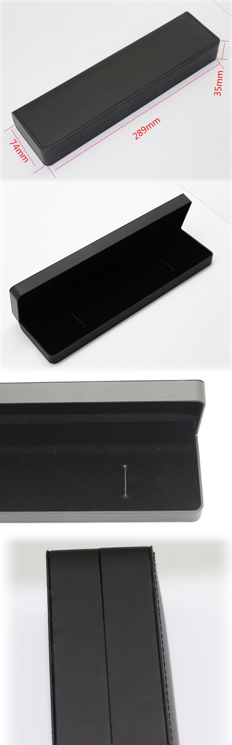 編號(hào):QS-JS091Z 規(guī)格:289*74*35mm 起訂量:1000PCS LOGO:盒面無(wú)LOGO 顏色:黑色 樣期:七天 貨期:確認(rèn)大貨樣20個(gè)工作日 描述:PU皮包膠胚,內(nèi)飾為絨布