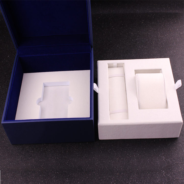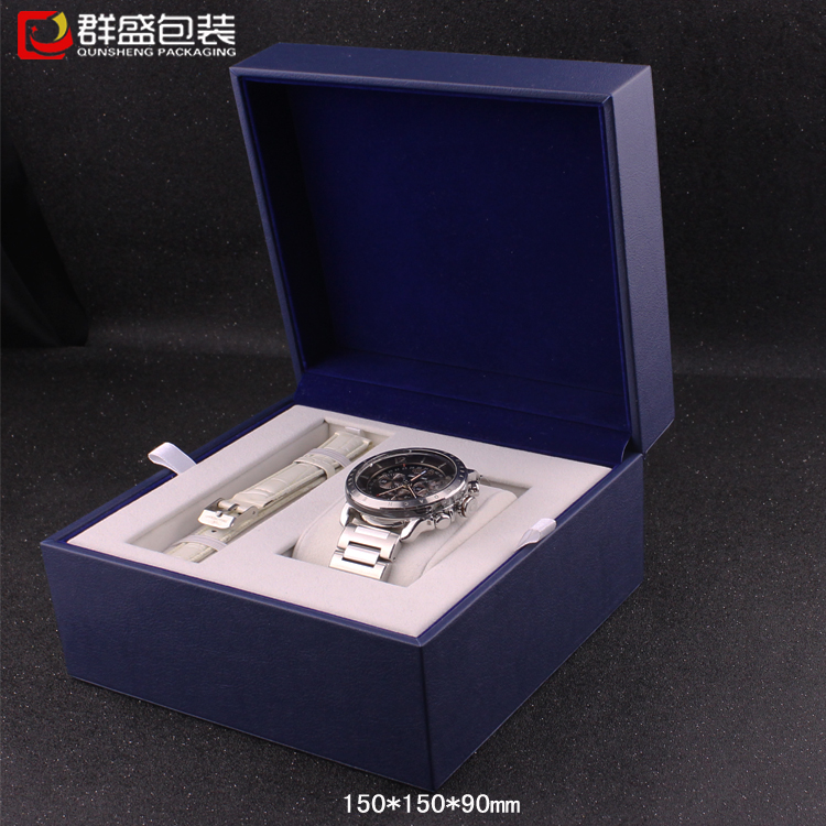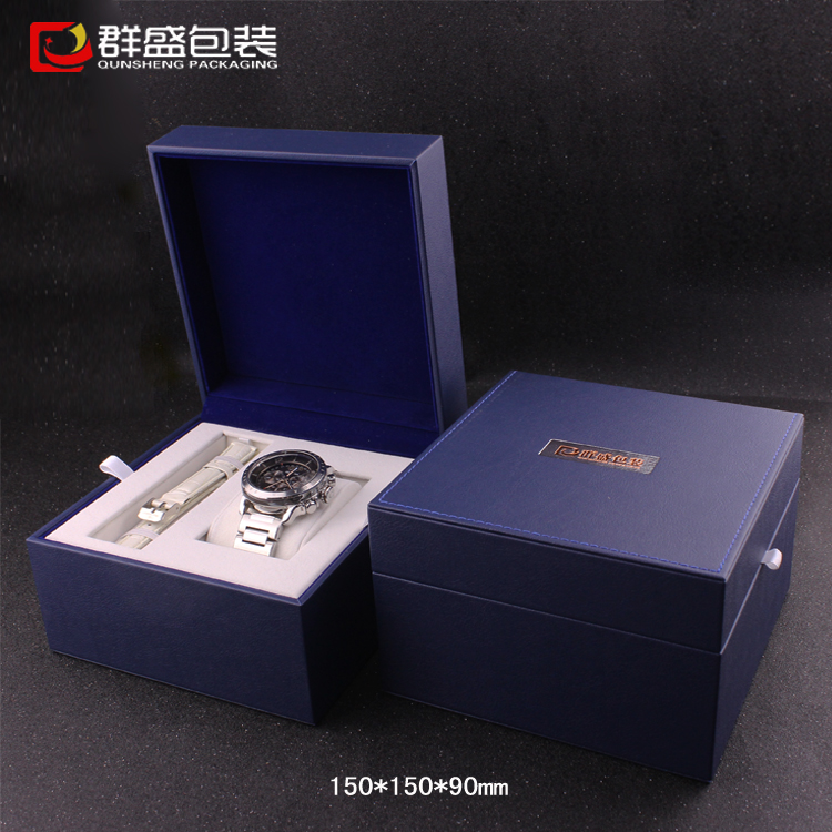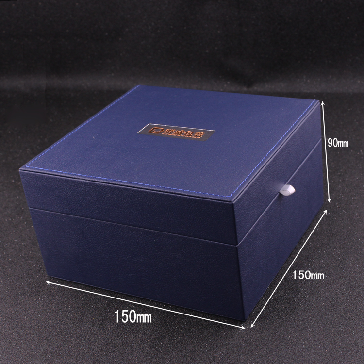 - 深圳皮革盒工廠訂制寶藍(lán)色套裝高檔手表盒