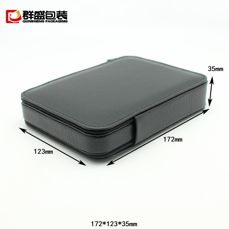 編號:QS-JS109Z 規(guī)格:172x123x35mm 起訂量:1000PCS LOGO:盒面壓印 顏色:黑色 樣期:七天 貨期:確認大貨樣20個工作日 描述:PU皮包膠胚,內(nèi)飾為PU皮包膠胚