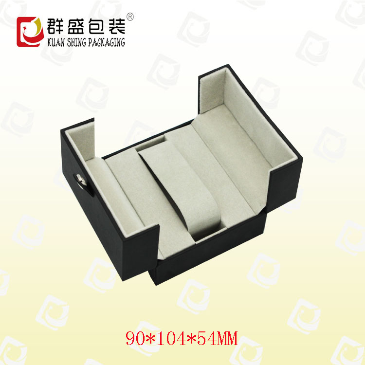 編號:QS-JS032Z 規(guī)格:90*104*54MM 起訂量:1000PCS LOGO:盒面無LOGO 顏色:黑色 樣期:七天 貨期:確認(rèn)大貨樣20個工作日 描述:PU皮包膠胚,內(nèi)飾絨布,配c架