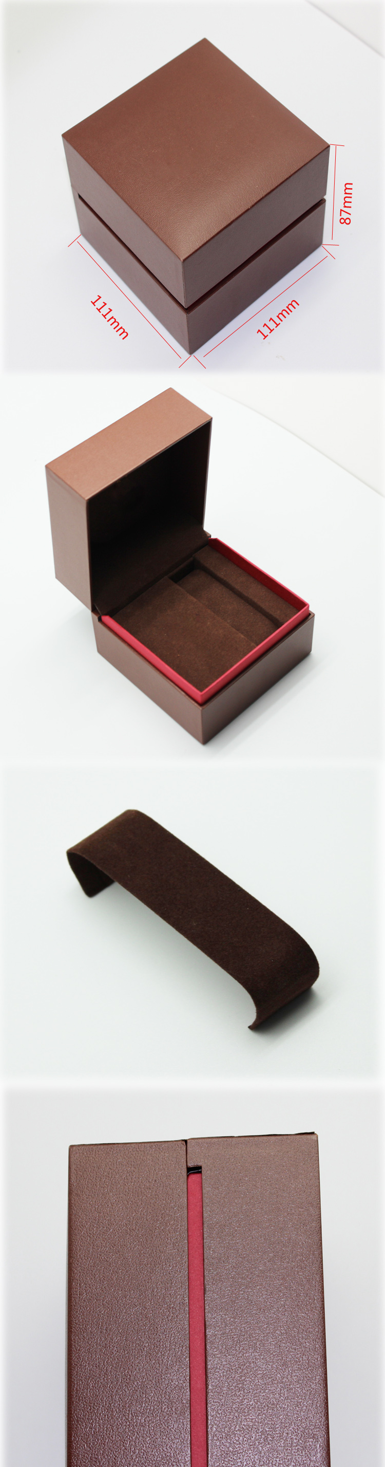 編號(hào):QS-JS079Z 規(guī)格:111*111*87MM 起訂量:1000PCS LOGO:盒面i燙銀色LOGO 顏色:棕色 樣期:七天 貨期:確認(rèn)大貨樣20個(gè)工作日 描述:充皮紙包膠胚,內(nèi)飾為絨布,配C架固定手表