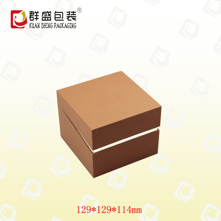 編號(hào):QS-JS103Z 規(guī)格:129*129*114mm 起訂量:1000PCS LOGO:盒面壓印LOGO 顏色:棕色 樣期:七天 貨期:確認(rèn)大貨樣20個(gè)工作日 描述:紙質(zhì)包膠胚,內(nèi)飾為絨布,配絲棉枕頭