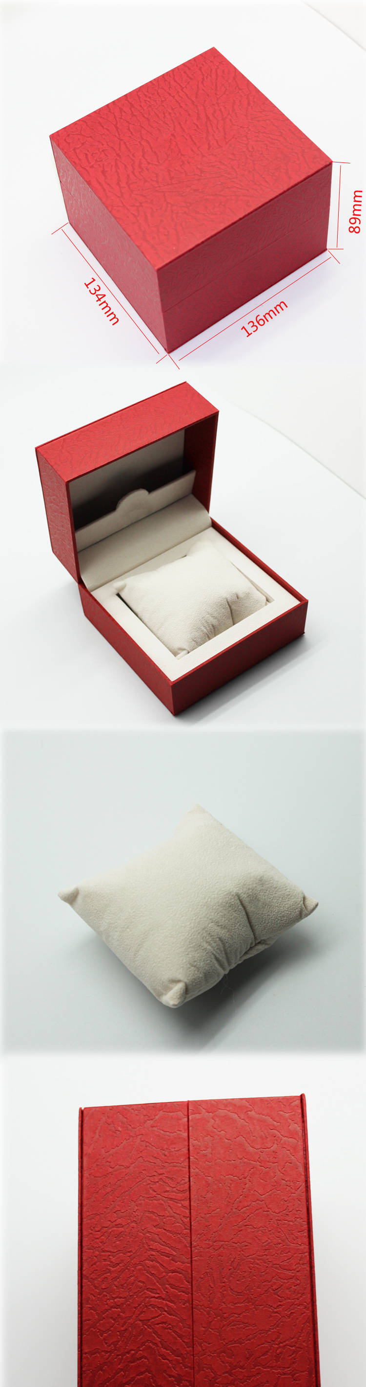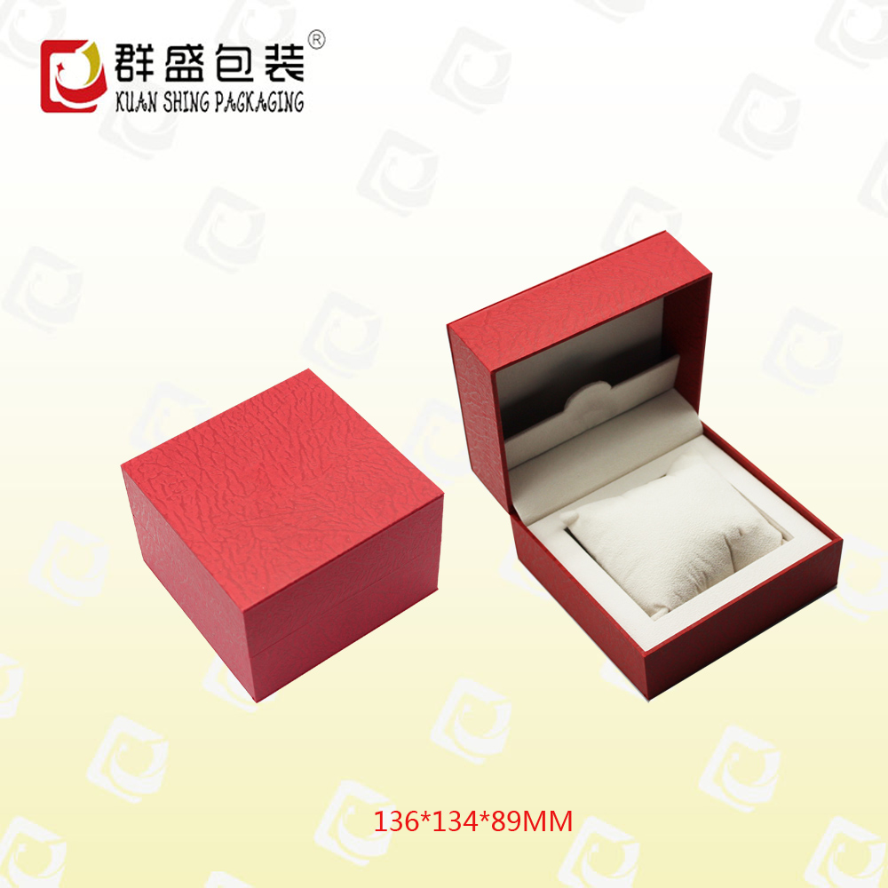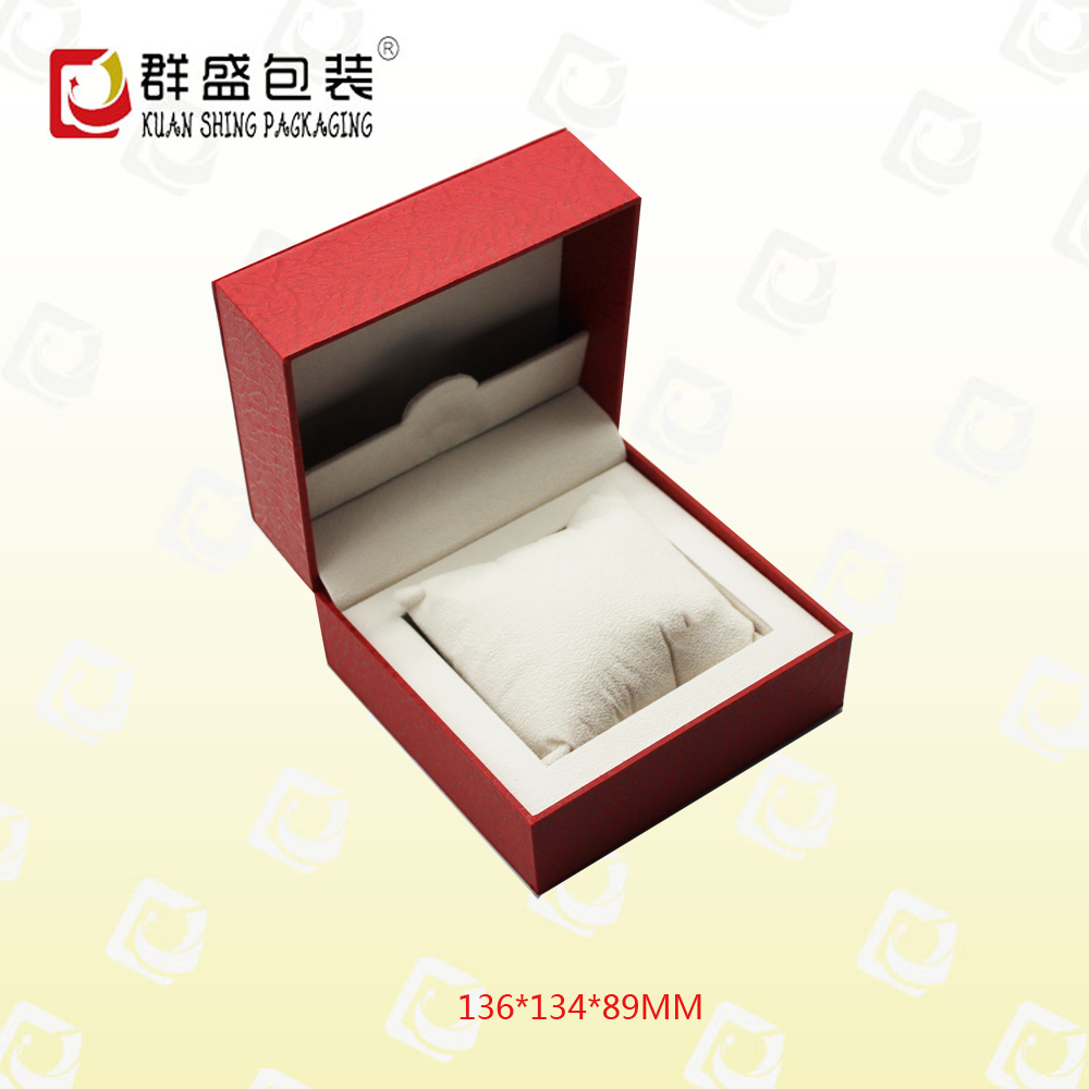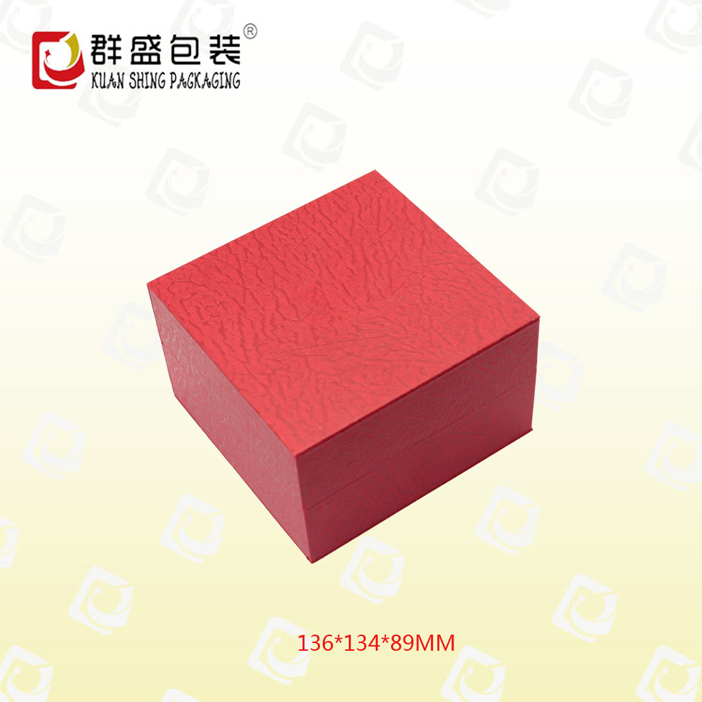 編號:QS-JS128Z 規(guī)格:136*134*89MM 起訂量:1000PCS LOGO:盒面燙銀色LOGO 顏色:紅色 樣期:七天 貨期:確認(rèn)大貨樣20個(gè)工作日 描述:充皮紙包膠胚,內(nèi)飾為絨布,配絲綿枕頭