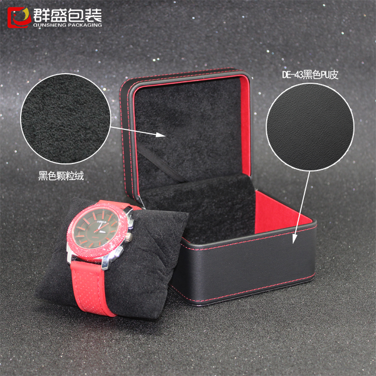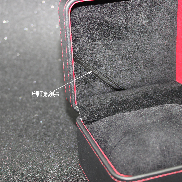 編號(hào):QS-JS074Y 規(guī)格:113*105*75MM 起訂量:1000PCS LOGO:盒面燙紅色LOGO 顏色:黑紅配色 樣期:七天 貨期:確認(rèn)大貨樣20個(gè)工作日 描述:PU皮包膠胚,內(nèi)飾為顆粒絨,配工絨布絲棉枕頭