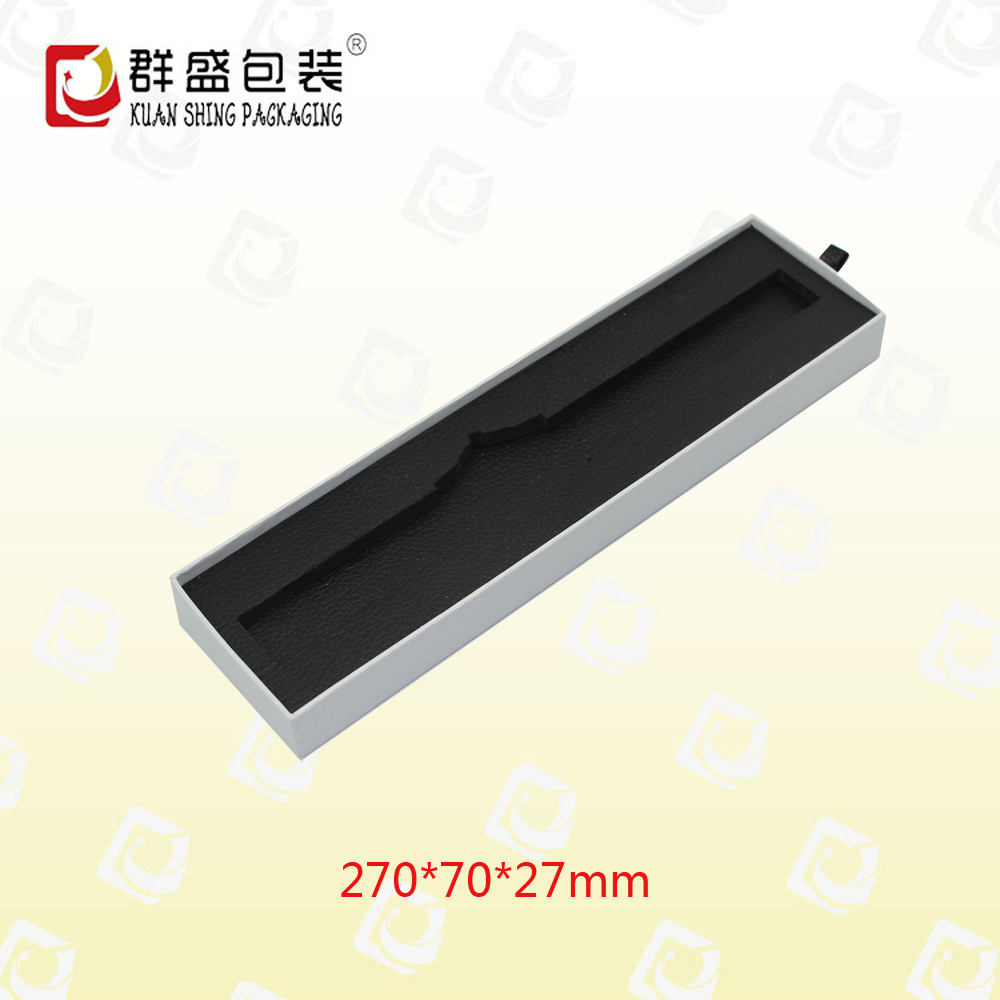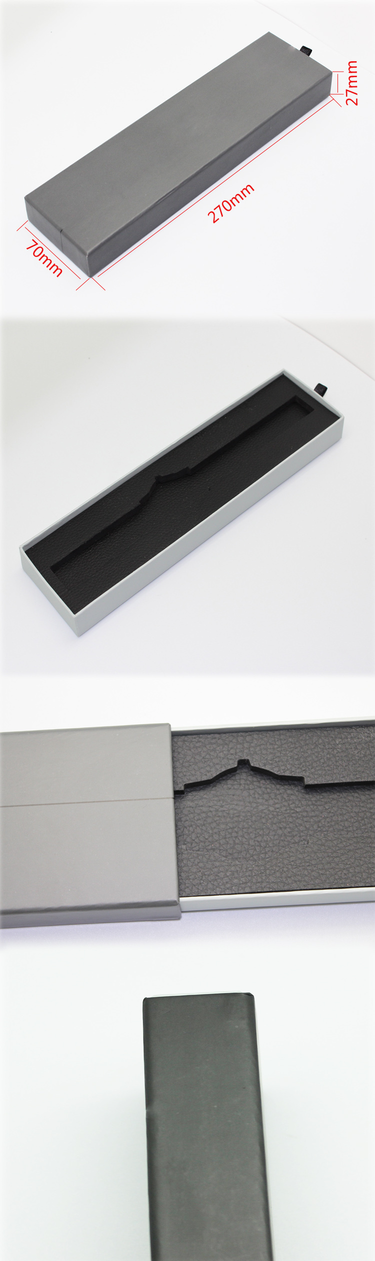 編號:QS-JZ038Z 規(guī)格:270*70*27MM 起訂量:1000PCS LOGO:盒面無LOGO 顏色:灰色 樣期:七天 貨期:確認大貨樣20個工作日 描述:紙質(zhì)包質(zhì)胚,內(nèi)飾為EVA