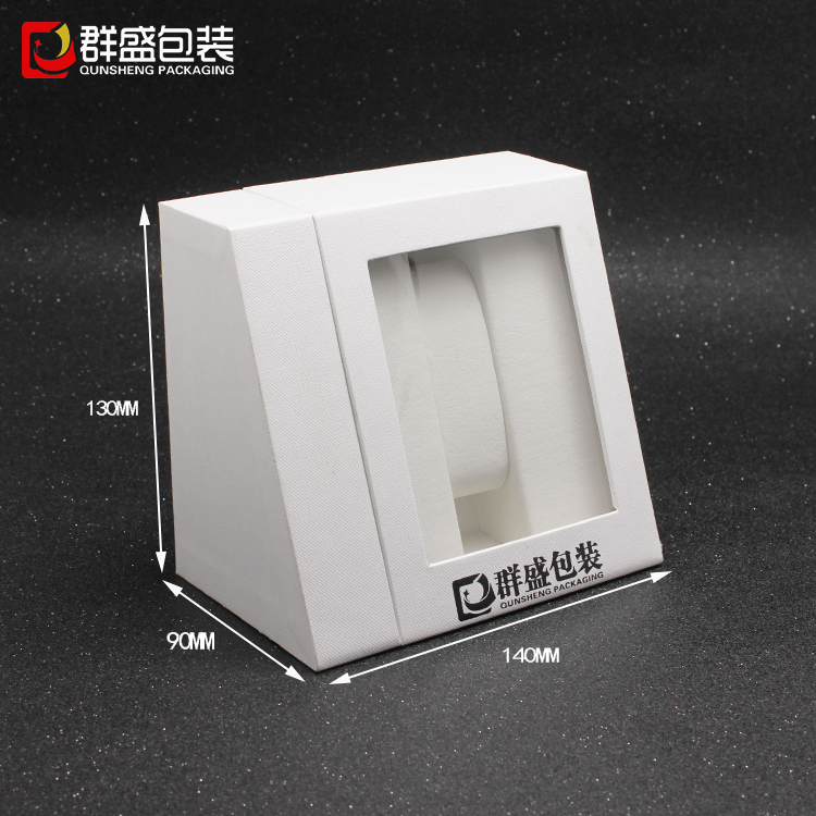 編號:QS-JZ029Z 規(guī)格:140*90*130MM 起訂量:1000PCS LOGO:盒面燙黑色LOGO 顏色:白色 樣期:七天 貨期:確認大貨樣20個工作日 描述:紙包卡紙,盒面PVC片開窗,內(nèi)飾為PU皮,配C架固定手表