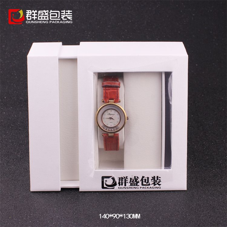- 龍崗包裝盒廠家訂制開窗展示抽屜式手表包裝紙盒