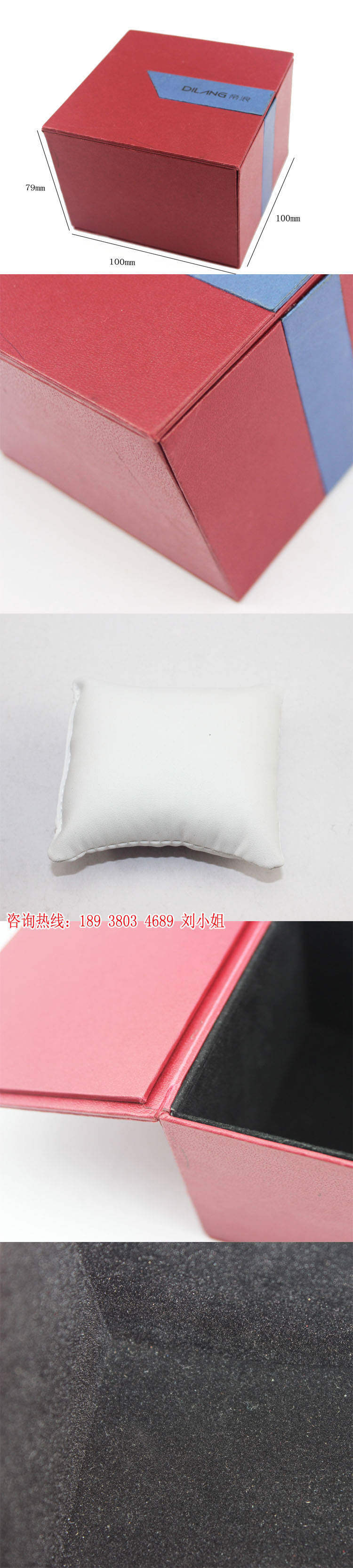規(guī)格:100*100*79MM 起訂量:1000PCS LOGO:盒面絲印LOGO 顏色:紅色 樣期:七天 貨期:確認(rèn)大貨樣20個工作日 描述:充皮紙包卡紙,內(nèi)飾為黑色絨布,配PU皮絲棉枕頭