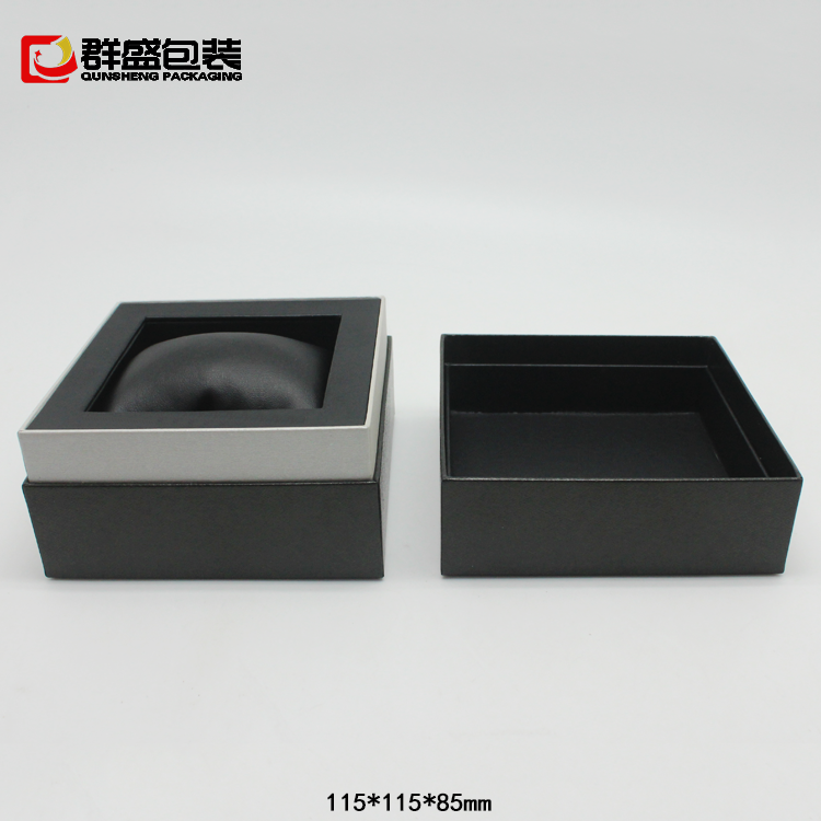 編號:QS-JS120Z 規(guī)格:115x115x85MM 起訂量:1000PCS LOGO:盒面燙銀 顏色:黑色 樣期:七天 貨期:確認(rèn)大貨樣20個(gè)工作日 描述:卡紙+充皮紙+皮革