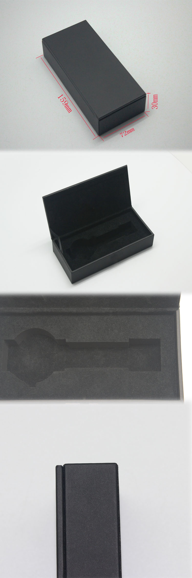 編號(hào):QS-JS124Z 規(guī)格:72*159*30mm 起訂量:1000PCS LOGO:盒面無LOGO 顏色:黑色 樣期:七天 貨期:確認(rèn)大貨樣20個(gè)工作日 描述:PU皮包膠胚,絨布裱EVA開槽