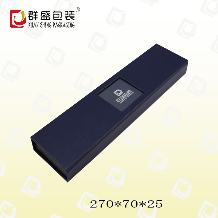 編號(hào):QS-JZ014Z 規(guī)格:270*70*25MM 起訂量:1000PCS LOGO:盒面壓印銀色LOGO 顏色:藍(lán)色 樣期:七天 貨期:確認(rèn)大貨樣20個(gè)工作日 描述:PU皮包紙胚,內(nèi)飾為PU紙,