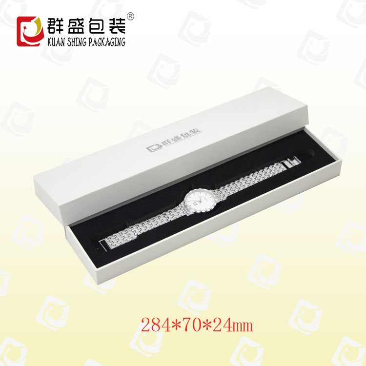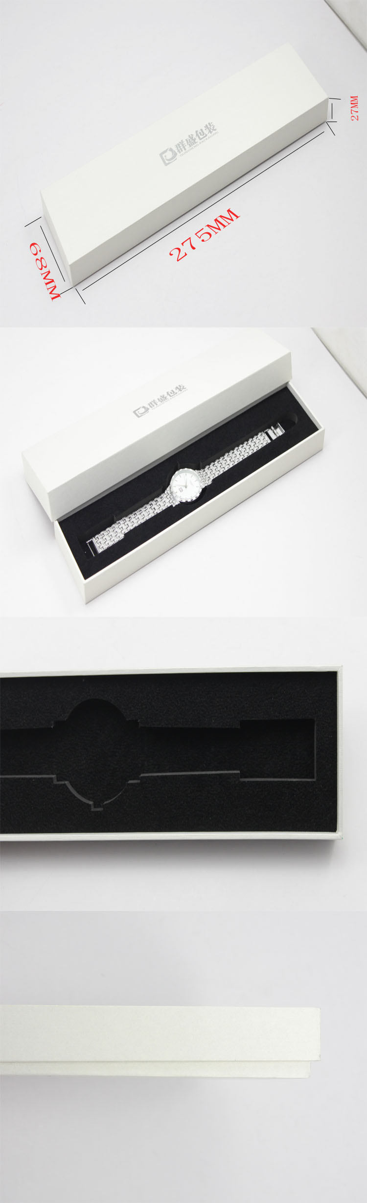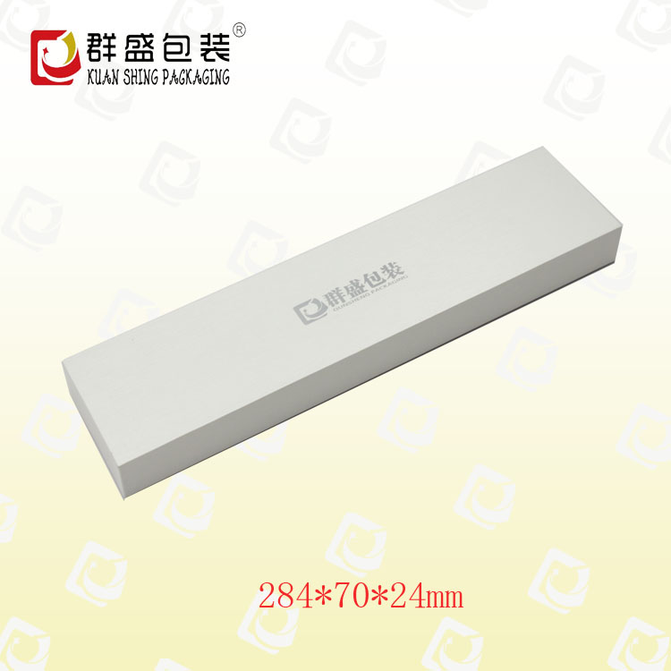 編號:QS-JZ017Z 規(guī)格:284*70*24MM 起訂量:1000PCS LOGO:盒面燙銀色LOGO 顏色:白色 樣期:七天 貨期:確認大貨樣20個工作日 描述:特種紙包紙胚,內(nèi)飾EVA