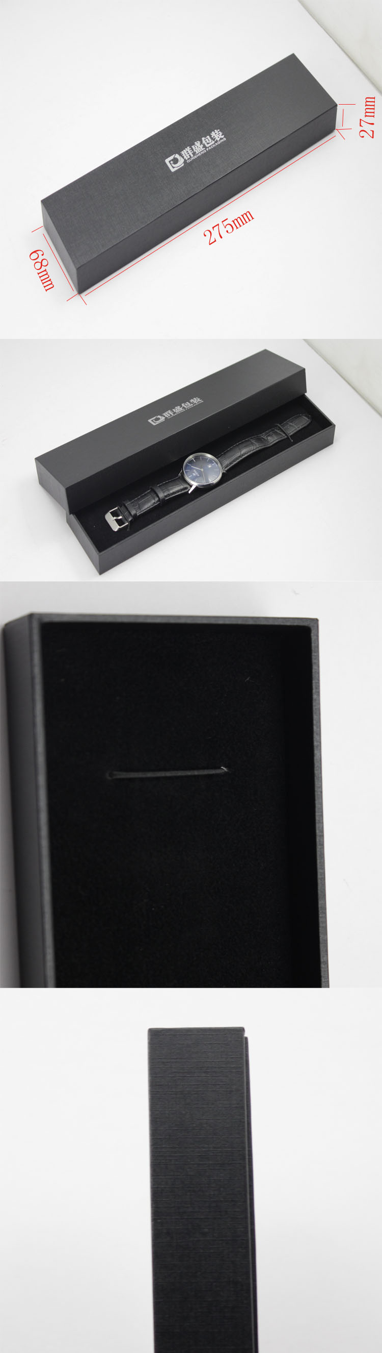 編號:QS-JZ019Z 規(guī)格:284*70*24MM 起訂量:1000PCS LOGO:盒面燙銀色LOGO 顏色:黑色 樣期:七天 貨期:確認(rèn)大貨樣20個(gè)工作日 描述:特種紙包紙胚,內(nèi)飾EVA