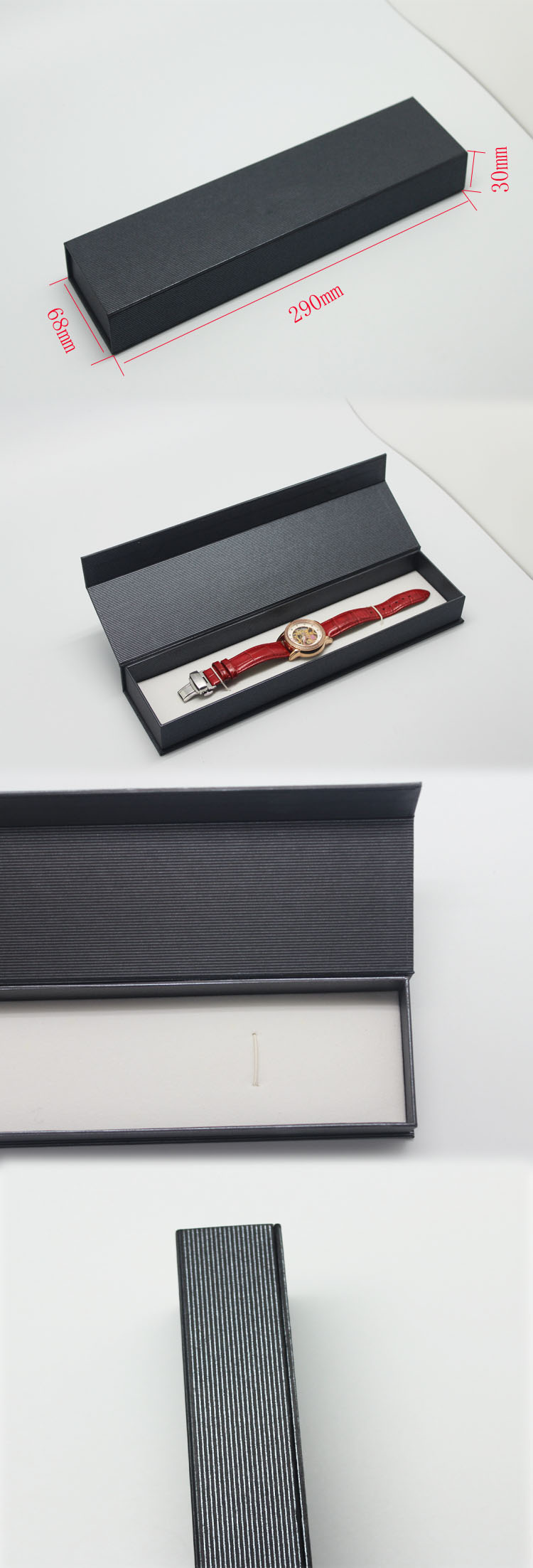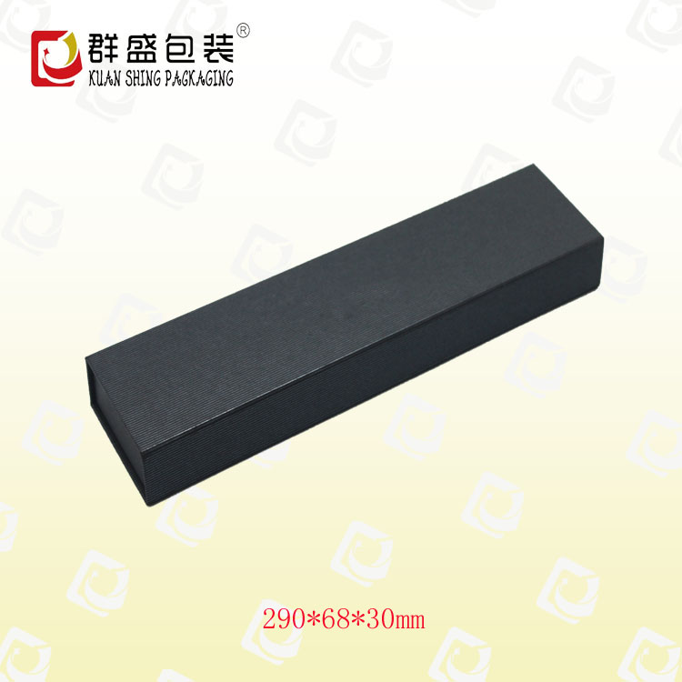 編號:QS-JZ055Z 規(guī)格:290*68*30mm 起訂量:1000PCS LOGO:盒面無LOGO 顏色:黑色 樣期:七天 貨期:確認(rèn)大貨樣20個(gè)工作日 描述:紙質(zhì)包質(zhì)胚,內(nèi)飾為絨布