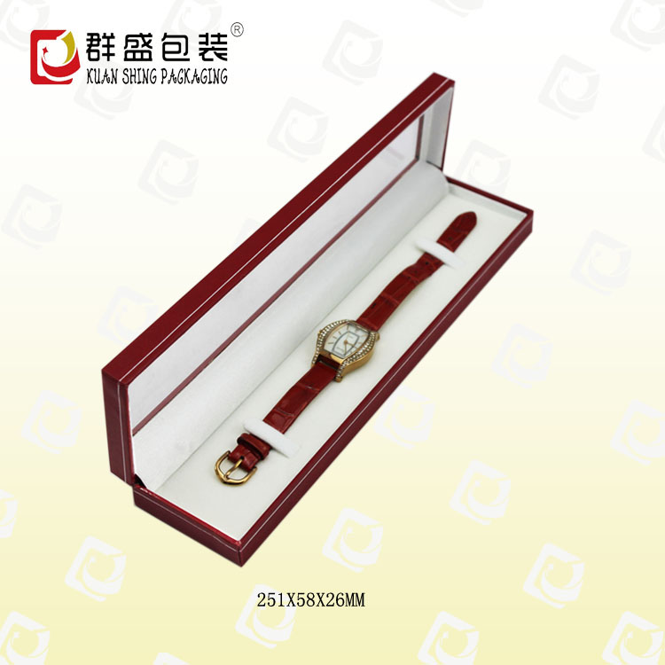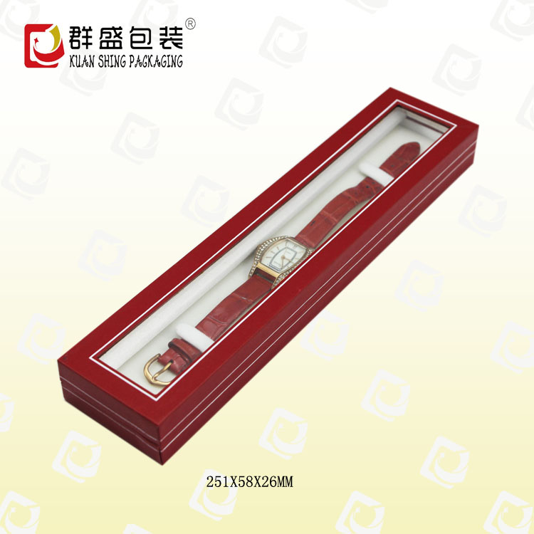 編號(hào):QS-JS029Z 規(guī)格:251X58X26MM 起訂量:1000PCS LOGO:盒面PVC開(kāi)窗 顏色:紅色 樣期:七天 貨期:確認(rèn)大貨樣20個(gè)工作日 描述:進(jìn)口充皮紙包膠胚,內(nèi)飾為絨布