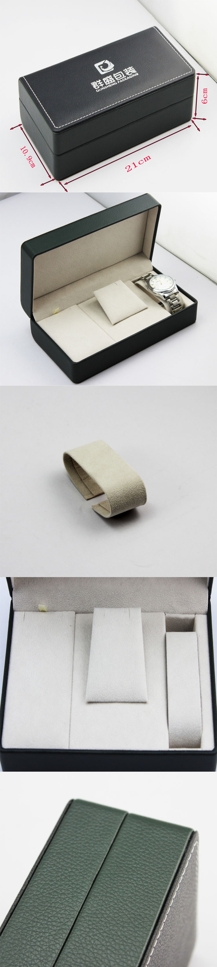 編號:QS-JS029Z 規(guī)格:21*10.9*6MM 起訂量:1000PCS LOGO:盒面壓印LOGO 顏色:黑色 樣期:七天 貨期:確認(rèn)大貨樣20個工作日 描述:PU皮包膠胚,內(nèi)飾為絨,配工字形枕頭