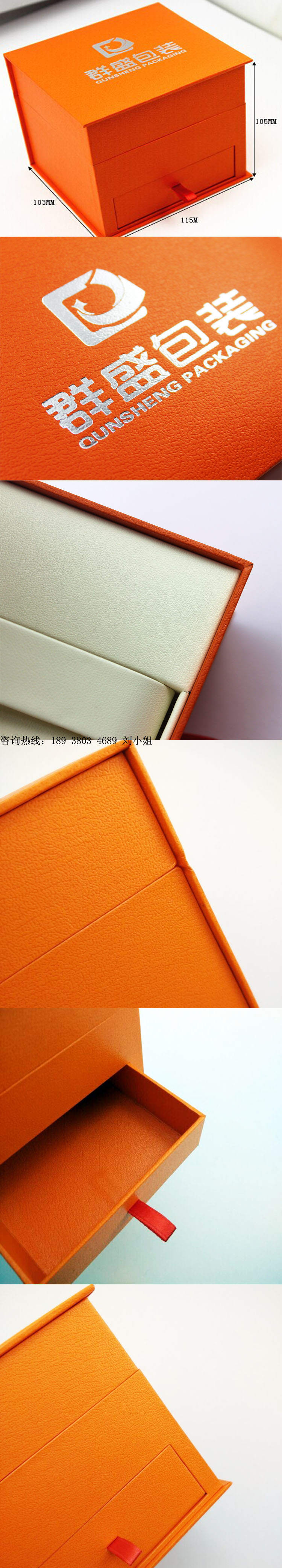規(guī)格:115*103*105MM 起訂量:1000PCS LOGO:盒面燙銀色LOGO 顏色:橙色 樣期:七天 貨期:確認(rèn)大貨樣20個(gè)工作日 描述:充皮紙包膠胚,內(nèi)飾為PU皮