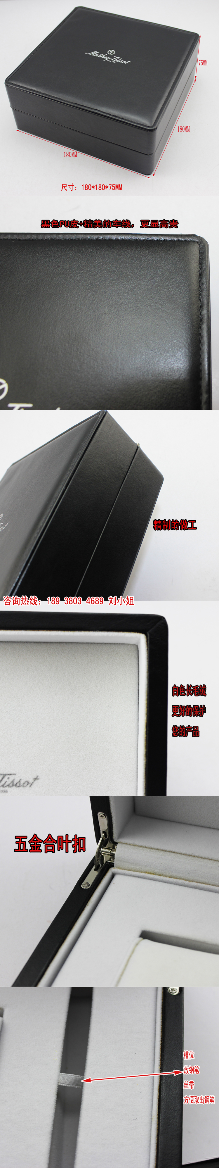 編號:QS-JM012Z 規(guī)格:180*180*75MM 起訂量:1000PCS LOGO:盒面壓印銀LOGO 顏色:黑色 樣期:七天 貨期:確認(rèn)大貨樣20個工作日 描述:PU皮包木胚,內(nèi)飾為絨布,配工字形枕頭
