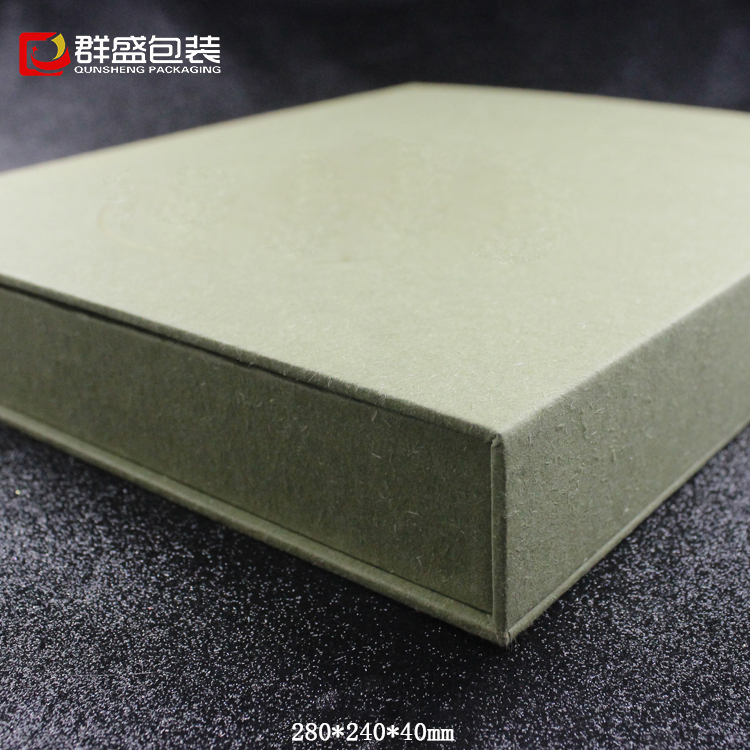 編號:QS-JS004L 規(guī)格:280X240X40mm 起訂量:1000PCS LOGO:盒面燙銀 顏色:綠色 樣期:七天 貨期:確認(rèn)大貨樣20個工作日 描述:書形紙盒,外包特種紙,盒內(nèi)特種紙裱卡紙
